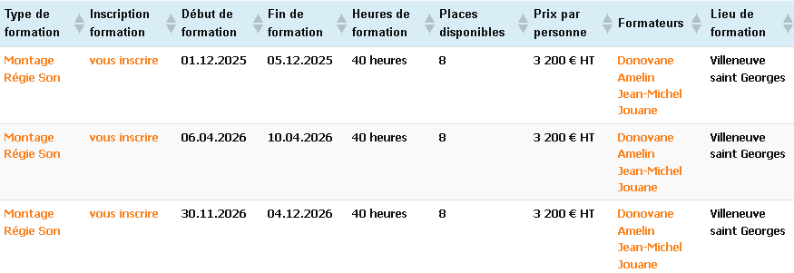 Les formateurs sont opérateurs de consoles lumières GMA3 et certifiés MA lighting University ; ils sont aussi amenés à occuper des postes de chef électro ou directeur photo.